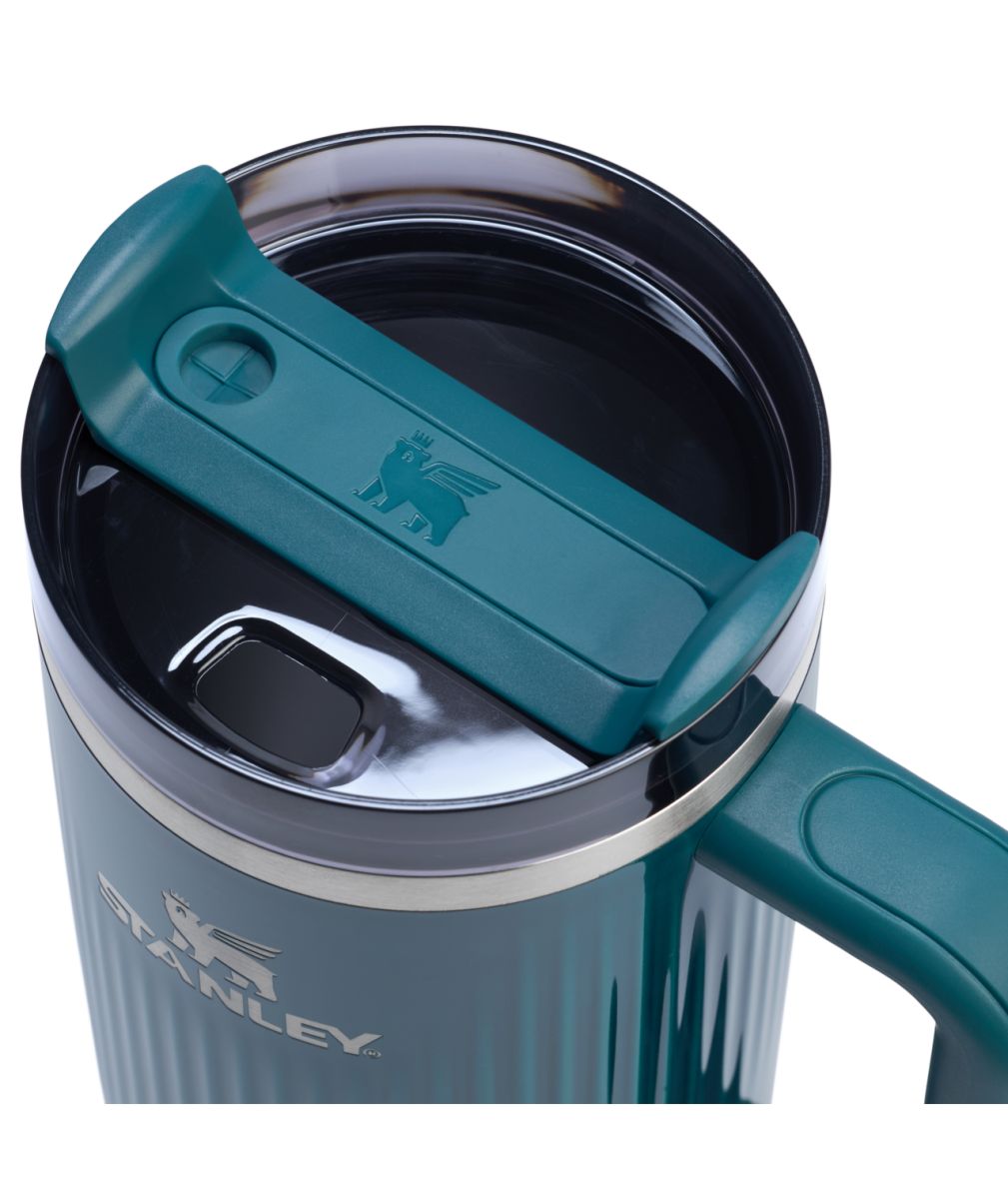 100% originální Stanley Quencher má úzkou základnu, která se bez problémů vejde do většiny držáků nápojů v autě, a je vybaven ergonomickou rukojetí pro pohodlné přenášení.