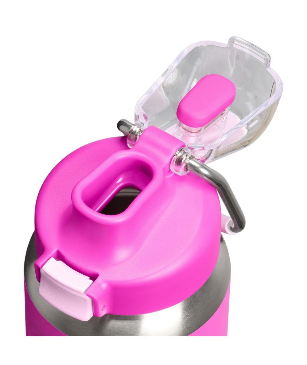 Široké hrdlo umožňuje snadné čištění i pohodlné vkládání ledu nebo ovoce a pítko je navrženo tak, aby bylo možné pít komfortně i za chůze nebo při sportu. Víčko je uzamykatelné pomocí tlačítka, což zajišťuje maximální ochranu proti vytečení. Navíc má poutko pro snadné přenášení nebo uchycení k batohu.
