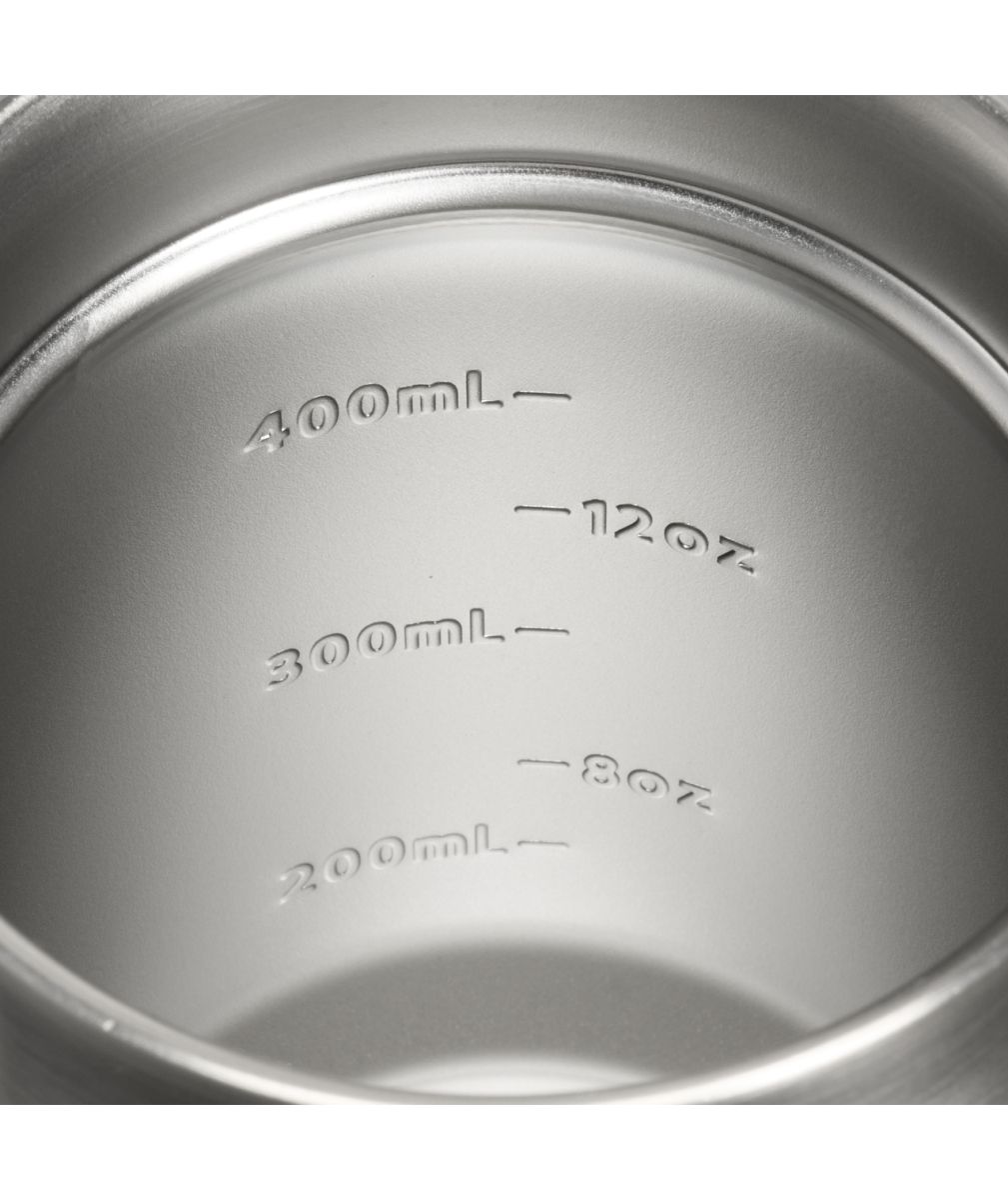 Hrnek je vybaven tritanovým víčkem s těsněním, které chrání proti rozlítí a omezuje únik tepla. Pevná ocelová rukojeť umožňuje pohodlné držení i v rukavicích, široké hrdlo usnadňuje pití, mytí i přidávání ledu a vnitřní objemové rysky umožňují přesné dávkování nápoje.