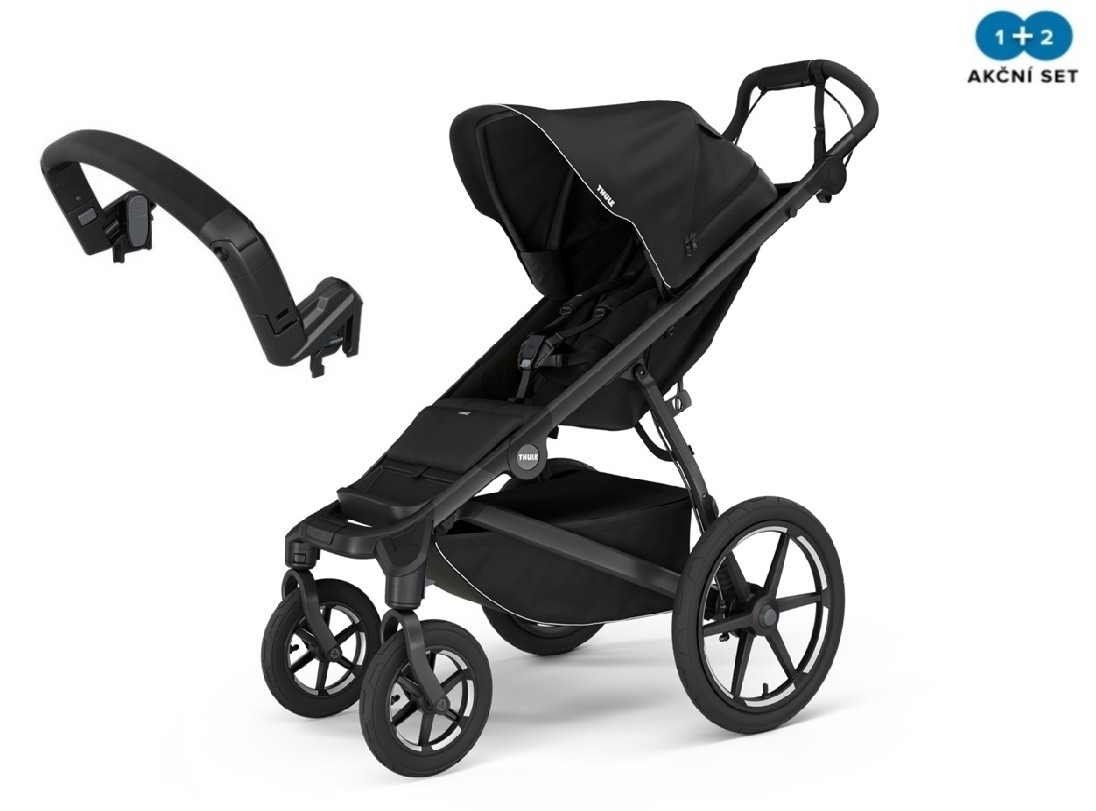 Jedinečný kočárek Thule Urban Glide 4-wheel Black ve výhodném a praktickém setu s madlem.