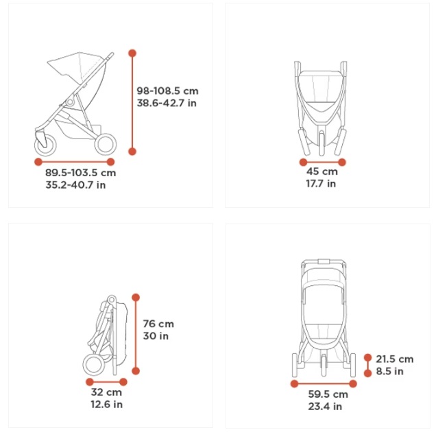 - Rozměry složeného kočárku: 75 x 45 x 39