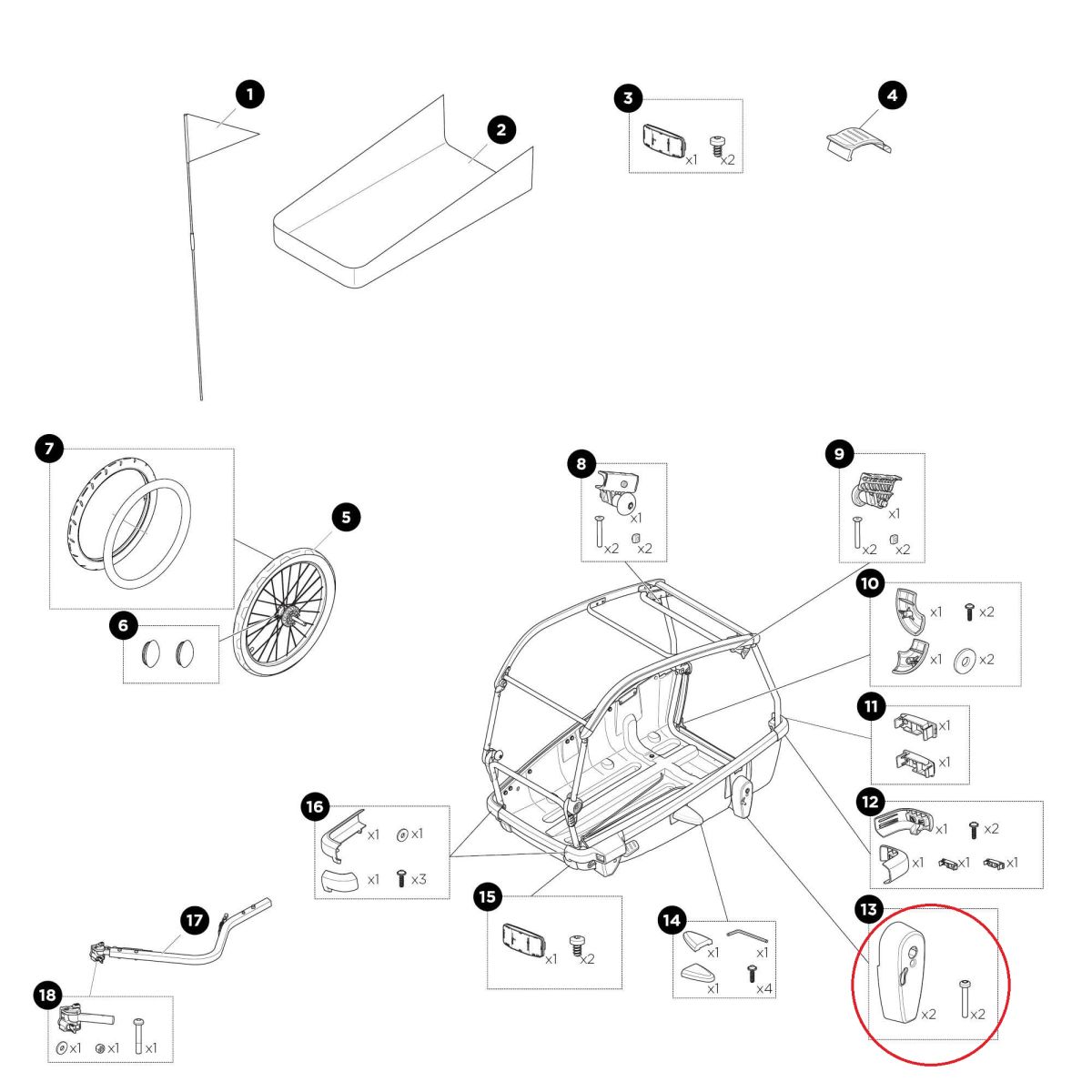 Cover rear wheel axle 55460, náhradní díl pro vozíky Thule Bexey.