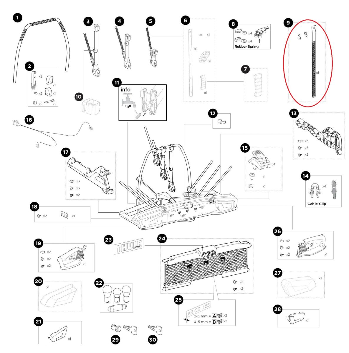 Ze sekce Náhradní díly THULE - Náhradní díly NOSIČE KOL