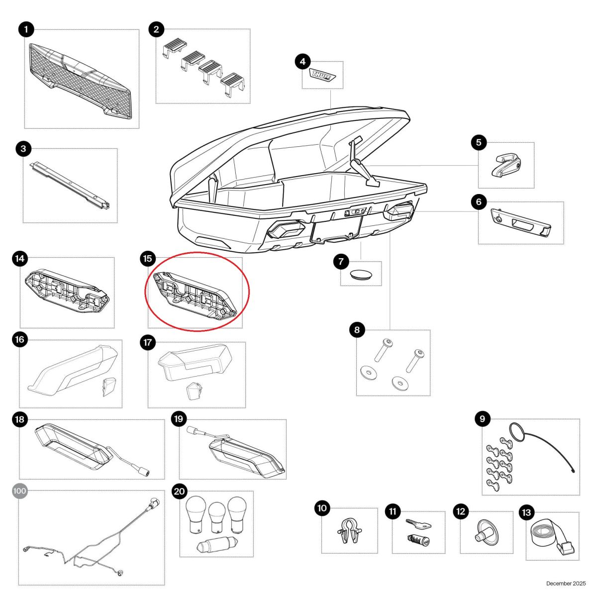 Náhradní rám lampy pravý Thule 1500057120 pro boxy Thule Arcos.