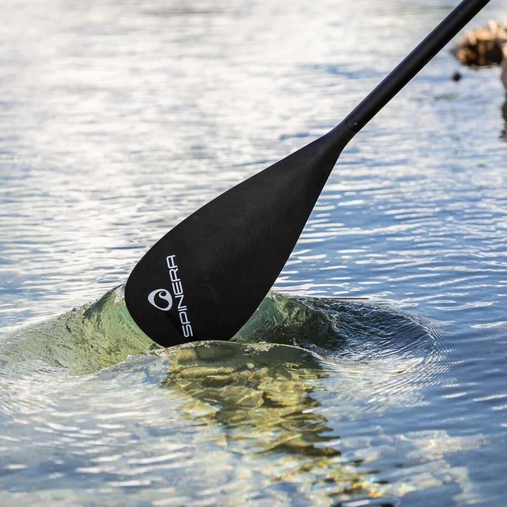 Kombinace pevného hliníkového shaftu a odolného plastového listu zajišťuje vysokou mechanickou odolnost a dlouhou životnost i při častém používání nebo méně šetrném zacházení. Tuhý shaft přenáší sílu záběru efektivně do vody a poskytuje jistý a stabilní pocit při pádlování, což ocení zejména méně zkušení jezdci.