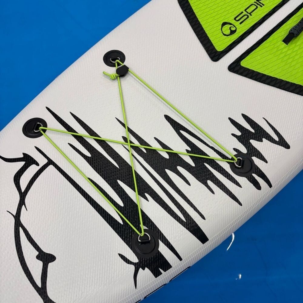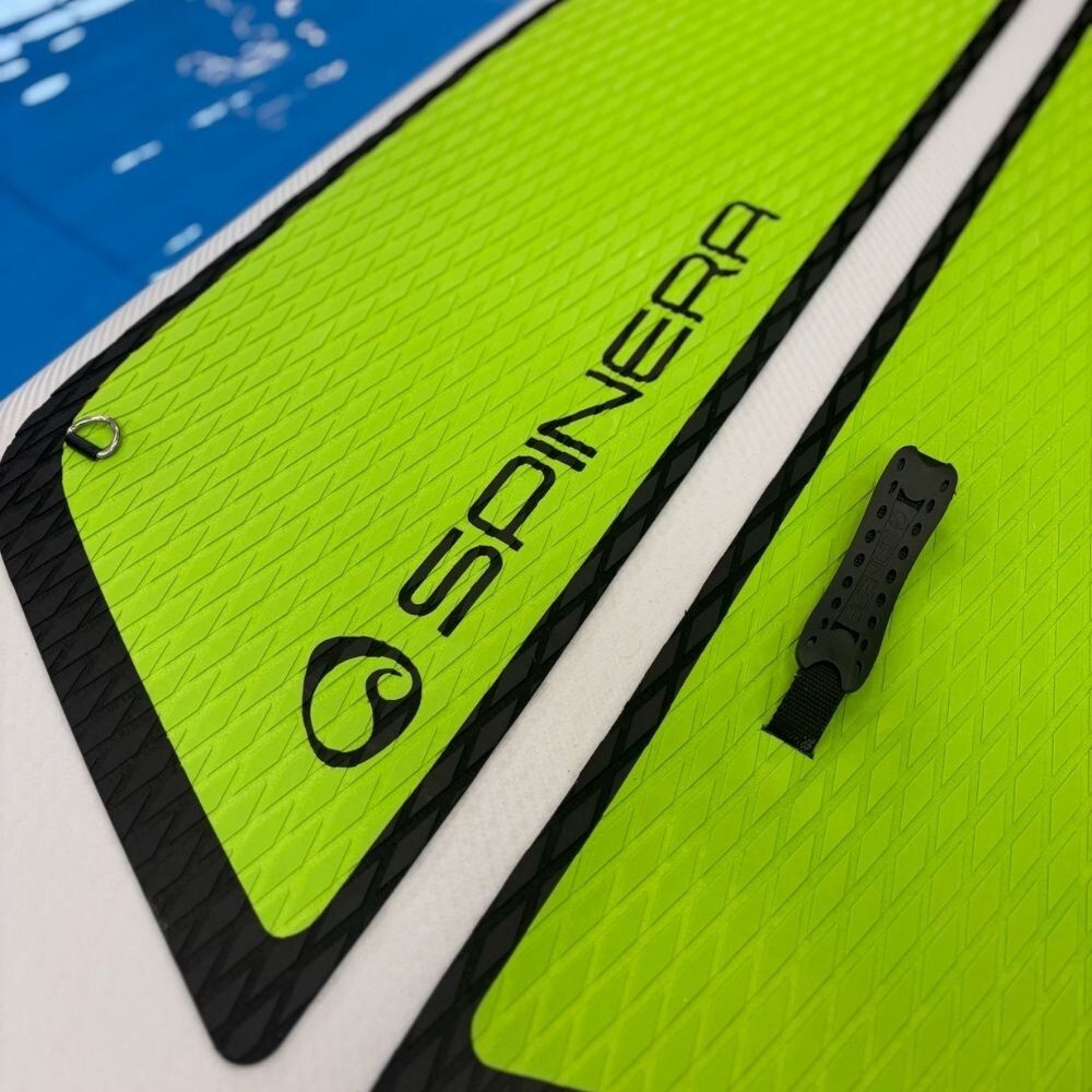 Plovák je vybaven čtyřmi D-ringy, které umožňují snadné připnutí kajakové sedačky a rychlou proměnu paddleboardu v pohodlný kajak pro sezení. Praktická flexibilní lanka na palubě slouží k bezpečnému uchycení osobních věcí, jako je batoh, láhev s vodou nebo drobné vybavení na výlet. Pohodlné centrální madlo usnadňuje přenášení nafouknutého paddleboardu, zatímco protiskluzová nášlapná vrstva z kvalitní EVA pěny s uzavřenou strukturou zajišťuje jistý a komfortní postoj a zároveň se snadno udržuje v čistotě. Směrovou stabilitu zajišťují dvě zadní flosny, které se upevňují pomocí jednoduchého Slide-in systému, díky čemuž je montáž rychlá a bez nářadí. SPINERA Light 10'6'' ULT je univerzální paddleboard vhodný pro rekreační jízdu, cestování i aktivní relax na vodě a představuje ideální kombinaci nízké hmotnosti, stability a všestranného využití.