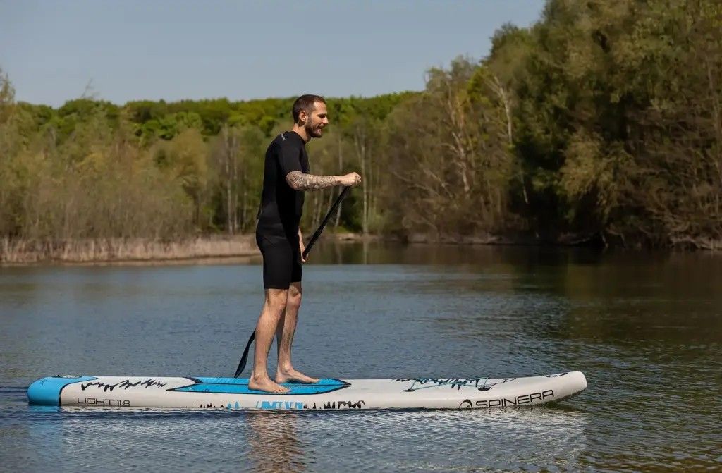 Pohodlné centrální madlo usnadňuje přenášení nafouknutého paddleboardu, zatímco dvě zadní flosny upevněné pomocí jednoduchého Slide-in systému se starají o stabilní vedení směru a rychlou montáž bez použití nářadí. SPINERA Light 11'8'' ULT je univerzální paddleboard, který vyniká lehkostí, vysokou nosností a výbornými jízdními vlastnostmi, a je ideální volbou pro rekreační i sportovnější paddleboarding.