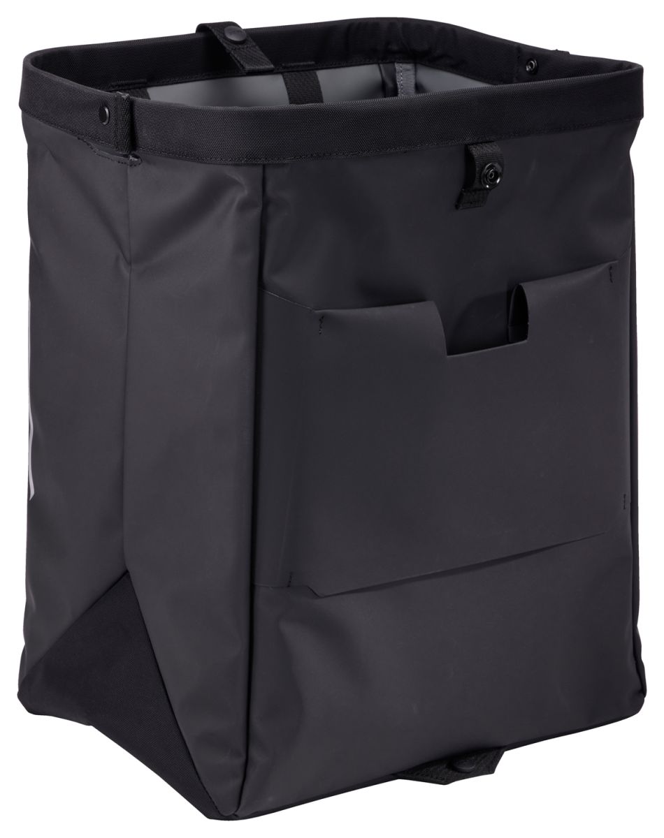 Konstrukce kombinuje pevný kovový rám, který drží stabilní tvar při otevření, se zesílenou základnou zabraňující prohýbání. Uložený náklad zůstává bezpečně usazený i při zátěži až 12,5 kg. Koš je zároveň plně skládací a po vyprázdnění jej lze složit naplocho. Pro maximální pohodlí je vybaven systémem kompatibilním s panelem Thule InLock, který umožňuje rychlé nasunutí na montážní rám a okamžité zacvaknutí bez nutnosti složité instalace. Měkké spojení systému InLock zajišťuje tichou a plynulou jízdu bez nepříjemných vibrací či klepání (panel Thule InLock se prodává samostatně nez něj není možné brašnu uchytit).