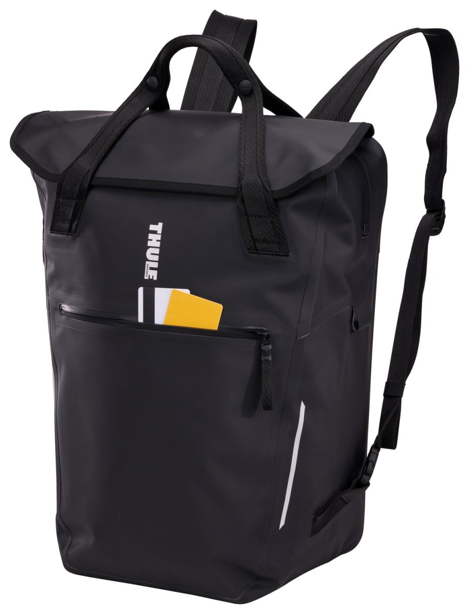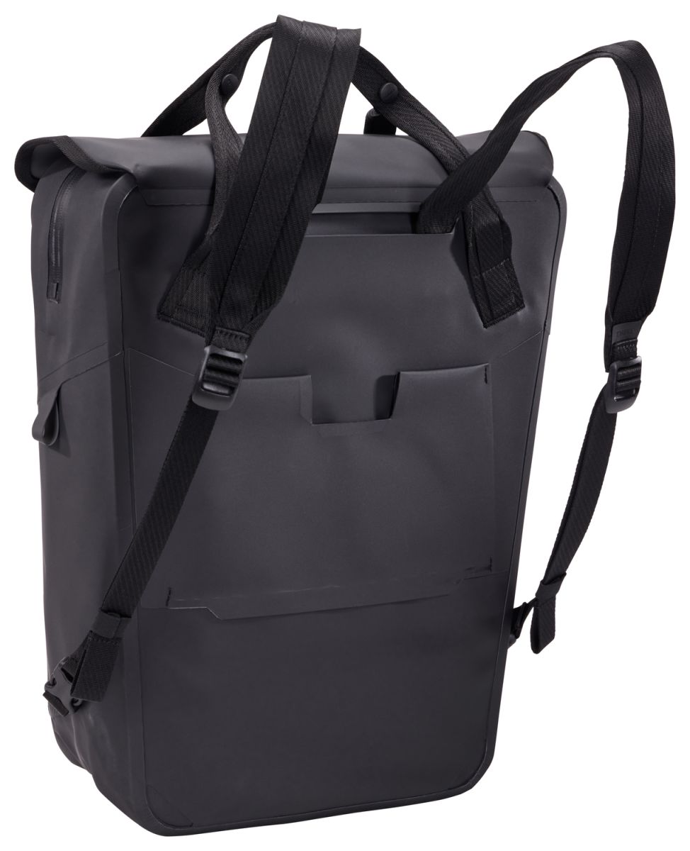 Thule Shield 23 l je chytrý konvertibilní batoh a postranní cyklistická brašna v jednom, která plynule přechází z nosiče kola na pohodlný batoh na zádech.