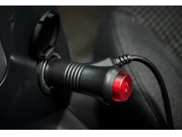 Zástrčka je vybavena červeným vypínačem. Vstup i výstup 12-24 V. Konektor 5,5x2,5mm.