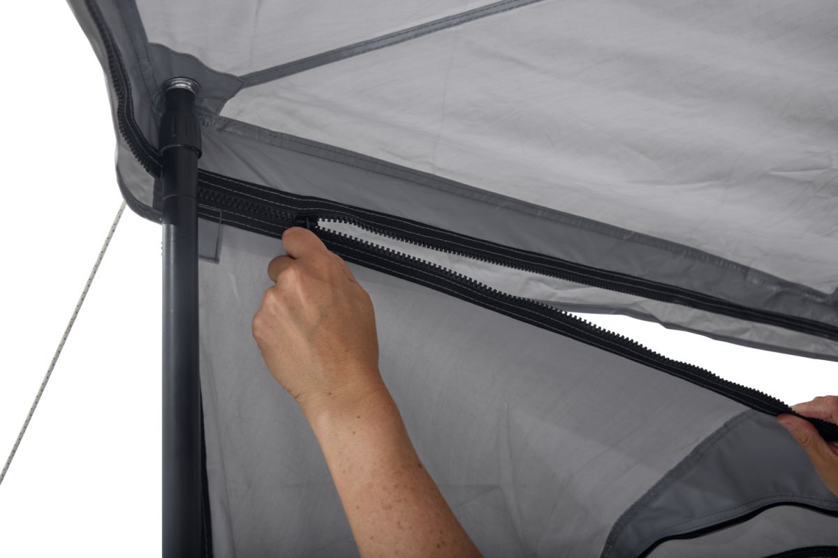 Stěny se snadno připojují k markýze a díky modulární konstrukci umožňují vytvořit plně uzavřenou místnost nebo jen částečné krytí podle aktuálních potřeb a uspořádání tábořiště. Celý systém je navržen tak, aby dokonale ladil s markýzou Thule Approach 2 a zachoval jednotný, čistý vzhled.