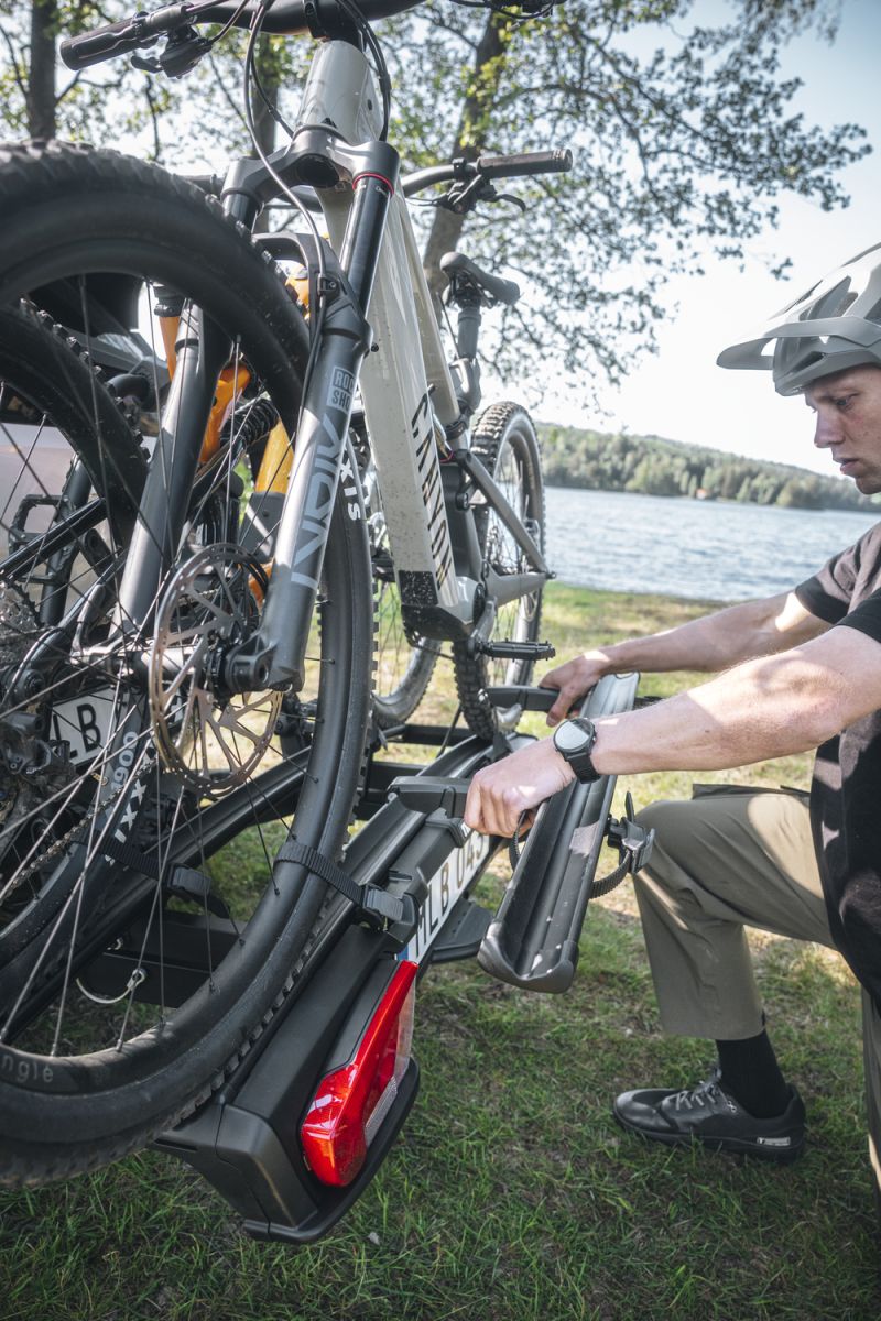 Díky chytrému sklopnému mechanismu s pedálem je možné i s naloženými koly snadno otevřít zavazadlový prostor. Úhel náklonu je nastavitelný v rozmezí 50 až 65 stupňů a umožňuje přístup i u vozů s vyššími zadními dveřmi, například u menších dodávek.